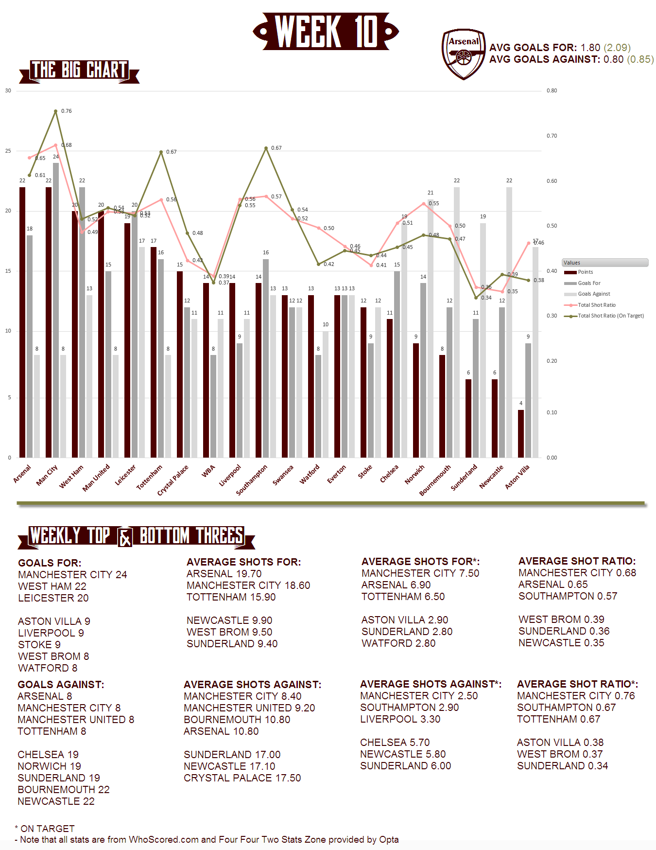 The fabled Week 10 is finally here and it’s easy to see why people tend to agree that by ten games in, trends start to emerge. I’ll give a bit of a breakdown this week of some of the things I’m seeing and I’ll also start a new section – season predictions – which I’ll carry on until Week 38.